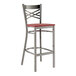 This bar stool's sturdy wood seat with a sleek mahogany finish combines with its contemporary ladder back steel frame to instill a modern look in any location. Plus, since this bar stool's back is contoured for a customer's back, it will provide comfort while maintaining a distinct appearance.