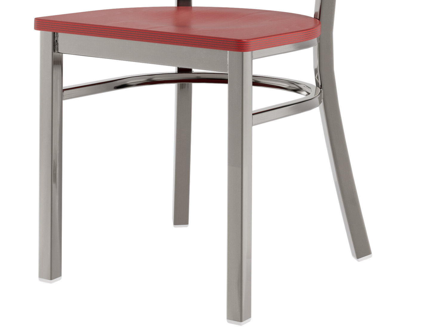 This chair's sleek wood seat combines with its contemporary ladder back steel frame to instill a modern look in any location. Plus, since this chair's back is contoured for a customer's back, it will provide comfort while maintaining a distinct appearance.
