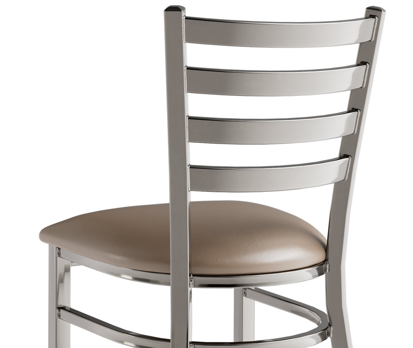This chair's sleek padded seat combines with its contemporary ladder back steel frame to instill a modern look in any location. Plus, since this chair's back is contoured for a customer's back, it will provide comfort while maintaining a distinct appearance.