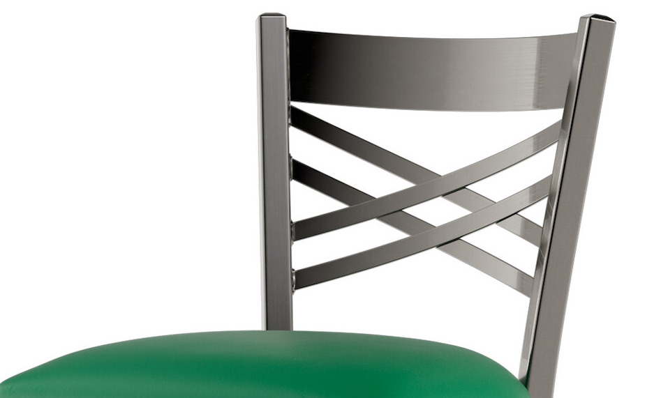 This bar stool's sleek padded seat combines with its contemporary cross back steel frame to instill a modern look in any location. Plus, since this bar stool's back is contoured for a customer's back, it will provide comfort while maintaining a distinct appearance.