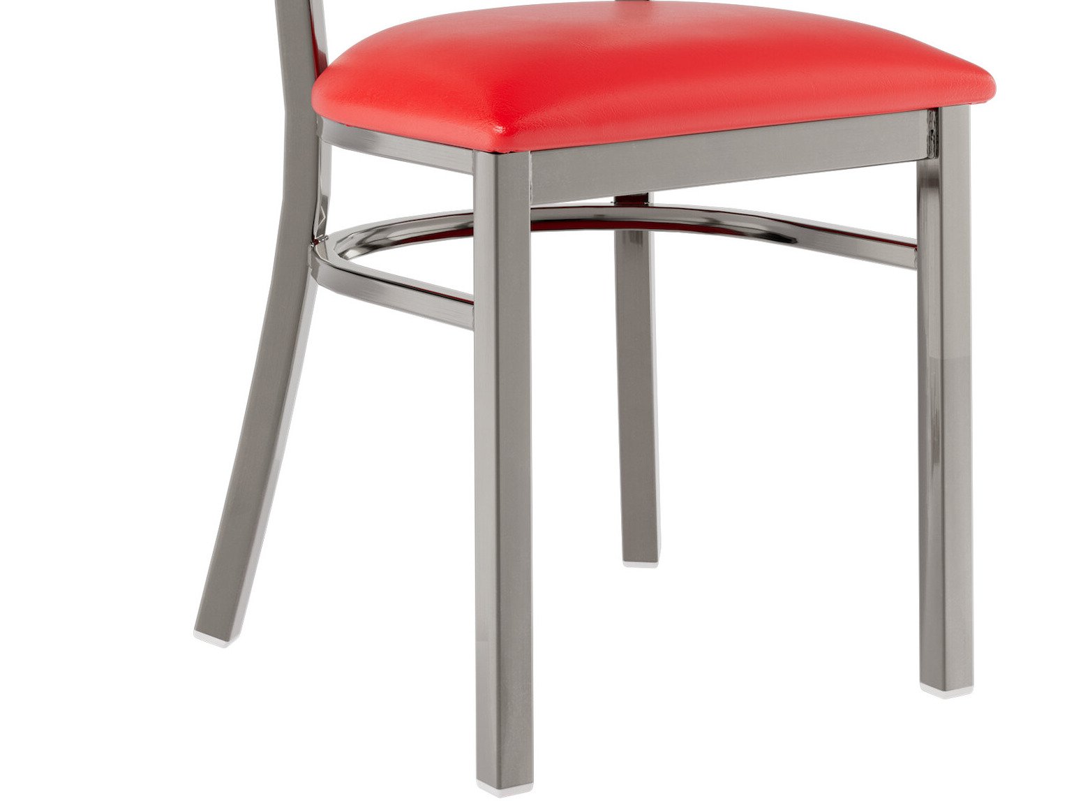 This chair's sleek padded seat combines with its contemporary cross back steel frame to instill a modern look in any location. Plus, since this chair's back is contoured for a customer's back, it will provide comfort while maintaining a distinct appearance.