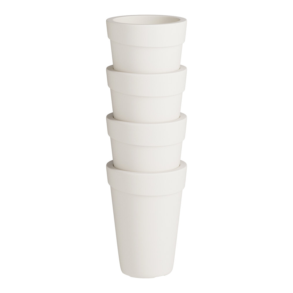 Its UV fade-resistant properties ensure that the white color will maintain its pristine appearance in outdoor settings, while the round shape with tapered sides and a wide rim provides a sleek, modern appearance.