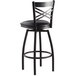 This bar stool's swivel design allows guests to turn their seats to comfortably socialize and fully enjoy your venue. The 2 1/2" thick black vinyl padded seat provides exceptional comfort for your guests, and it's also durable and easy to clean! It is made with fire-retardant foam for added safety.