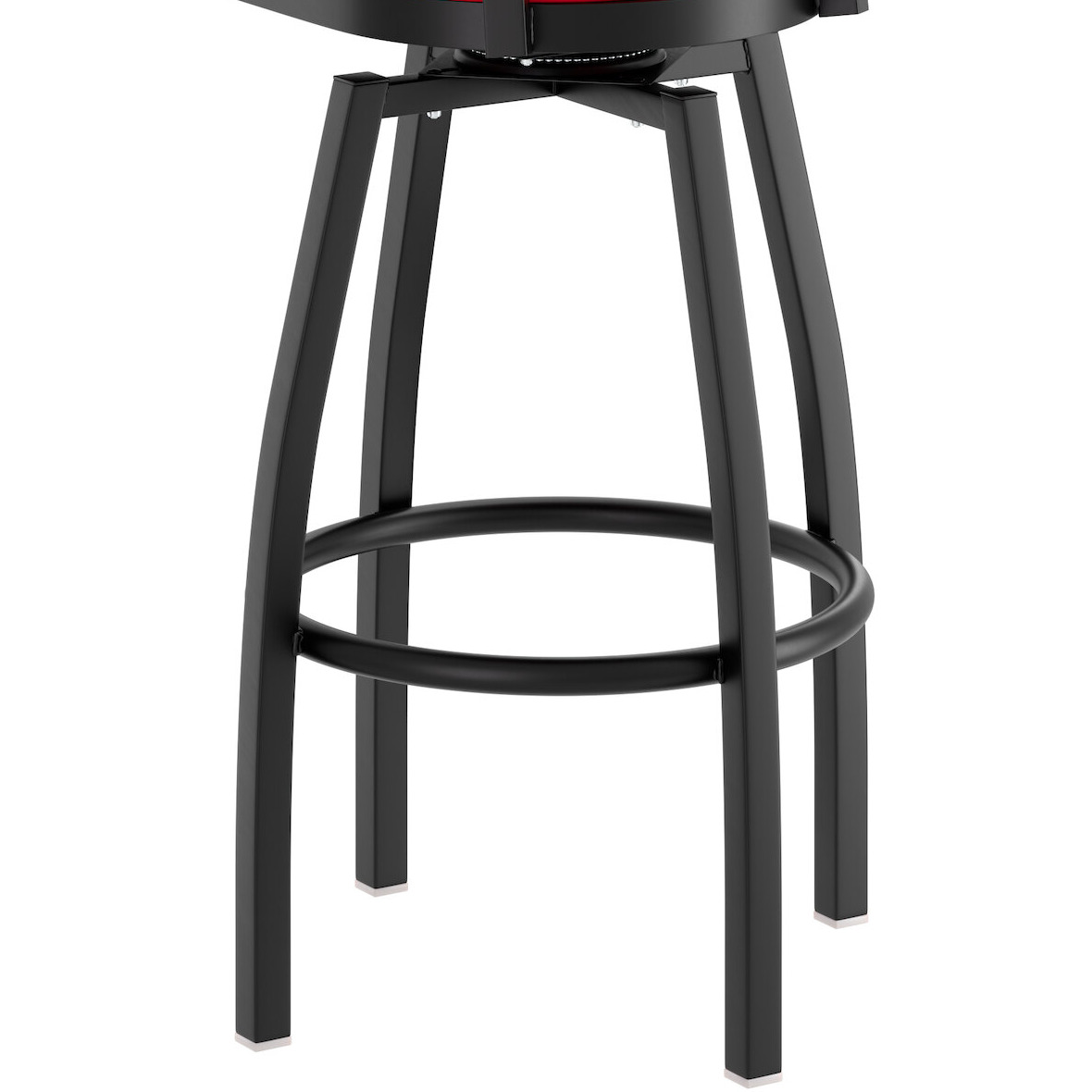 This bar stool's swivel design allows guests to turn their seats to comfortably socialize and fully enjoy your venue. The 2 1/2" thick red vinyl padded seat provides exceptional comfort for your guests, and it's also durable and easy to clean! It is made with fire-retardant foam for added safety.