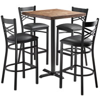 Lancaster Table & Seating 30" Square Bar Height Wood Butcher Block Table with 4 Black Cross Back Chairs - Vintage