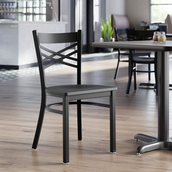 Seat your guests in comfort and style with this Lancaster Table & Seating black finish cross back chair with black wood seat.