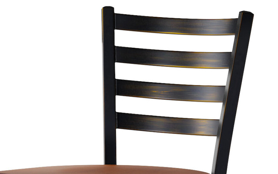This bar stool also features a ladder back design that gives it a unique visual appeal, making it perfect for either upscale or casual decor. The back's contoured shape also ensures the comfort of your guests.