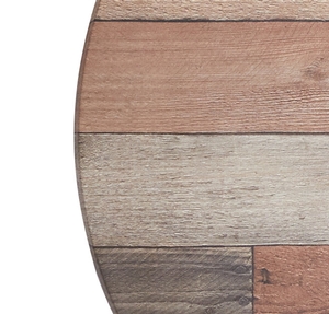 This round table top has a textured mixed plank finish that offers the rustic look of solid wood with a subtle, intriguing texture. Whether you're looking to revamp your restaurant's front-of-house space or enhance the appearance of your cafe patio or deck, this table top will spotlight the beauty of nature while focusing on an elegant dining experience in order to bring you the best of both worlds! This table top can be used with compatible Lancaster Table & Seating Excalibur table bases (sold separately). A screw length of 3/4" is recommended for installation (hardware sold separately).