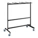 This dolly features a durable 14 gauge steel construction, ensuring that it has the strength to safely carry up to 500 lb., or 42 folding chairs and up to 10 rectangular folding tables from Lancaster Table & Seating. Tables must be at least 67" long to work with this dolly.