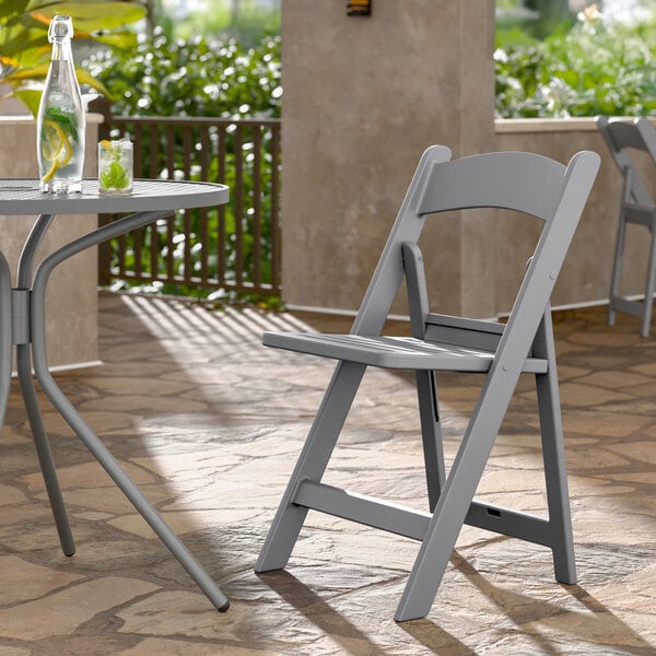 This model's gray resin finish adds style and vivid color to any backyard barbeque, formal banquet, pool area, or beachfront establishment. Plus, its durable polypropylene design ensures it can stand up to both indoor and outdoor use for added versatility, making it ideal for your business.