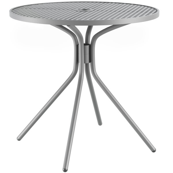 This table is constructed of durable stainless steel with a gray powder-coated finish that makes it resistant to inclement weather conditions, so you can keep it outdoors year-round without worry. The mesh tabletop design allows liquid to slip through so that it doesn't make a mess, giving it useful protection against spills and rain.