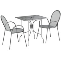 This gray chair features a sturdy, powder coated, galvanized steel construction that's built for long-lasting use. The powder coated frame offers rust resistance that will hold up in the elements, making it ideal for outdoor use.