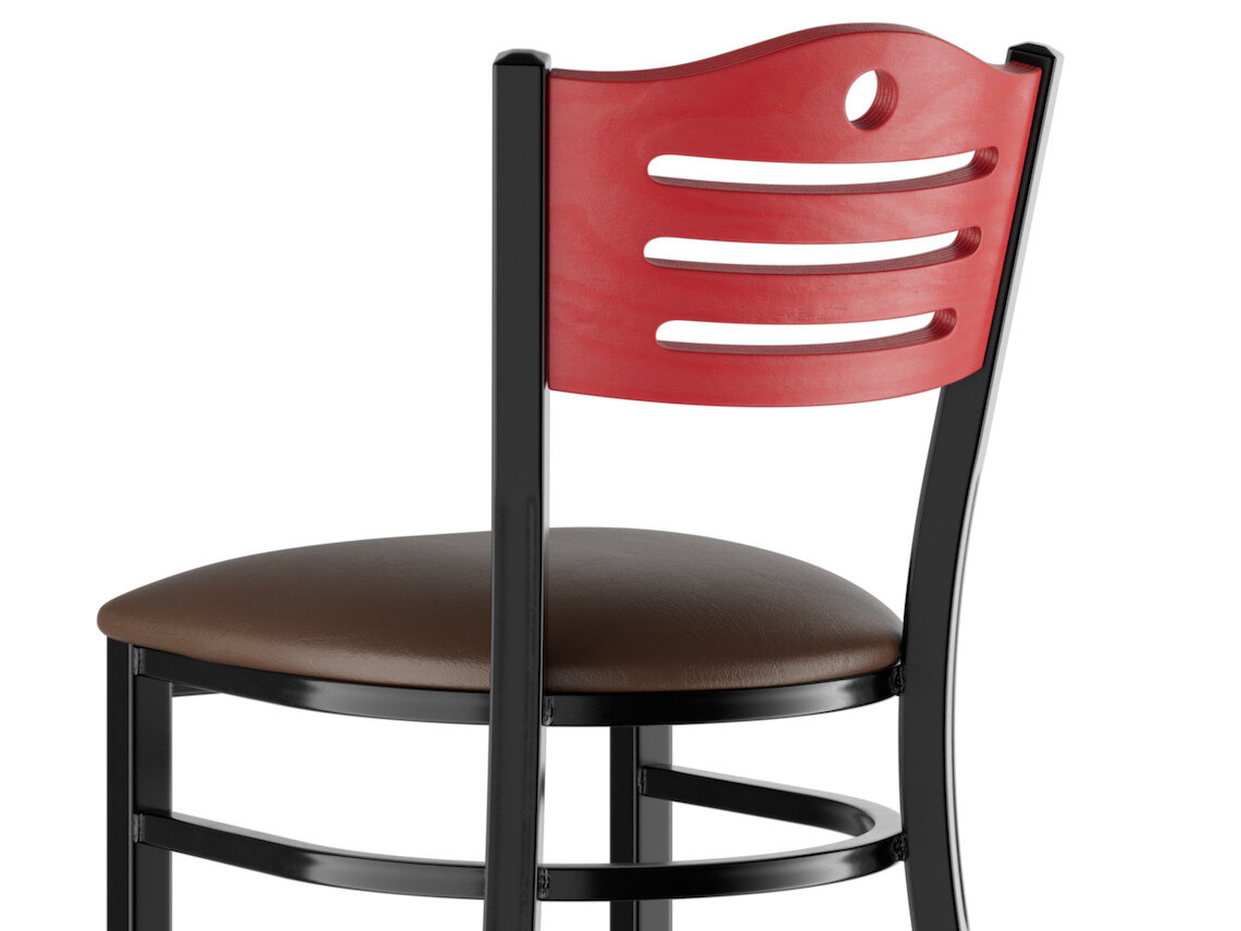 This bar stool features a style back with attractive slats and a cutout hole, which gives it a unique visual appeal. Plus, the bar stool's armless design is less restrictive and allows guests to socialize freely.