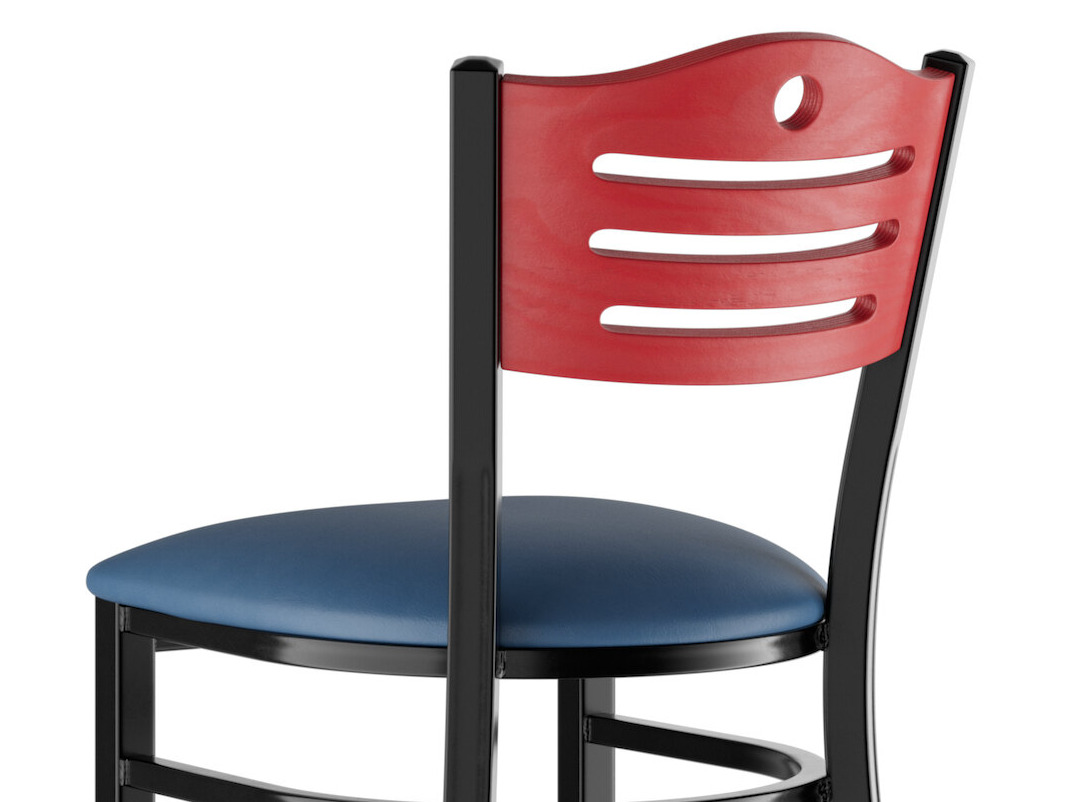 This bar stool features a style back with attractive slats and a cutout hole, which gives it a unique visual appeal. Plus, the bar stool's armless design is less restrictive and allows guests to socialize freely.