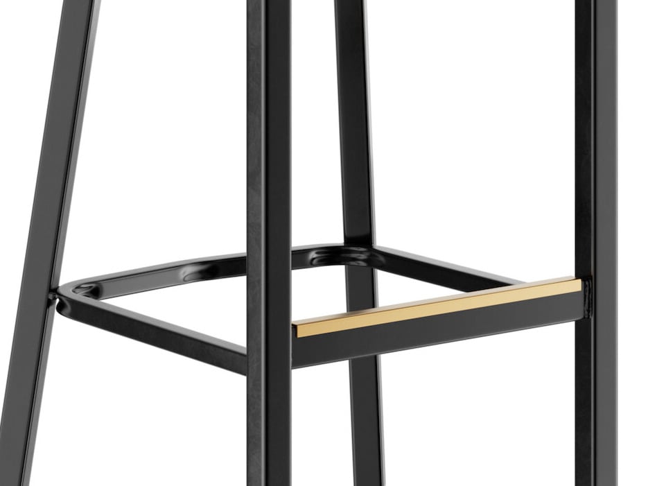 The bar stool's built-in footrest gives customers a place to rest their legs.