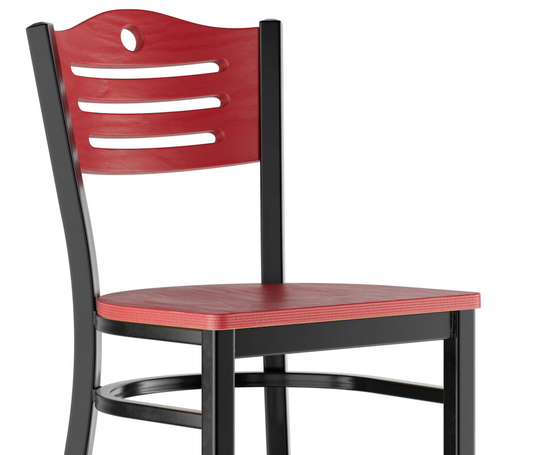 This bar stool's stylish back and wood seat combine with its modern steel frame to instill a unique look in any location. Plus, since this bar stool's back is contoured for a customer's back, it will provide comfort while maintaining a distinct appearance.