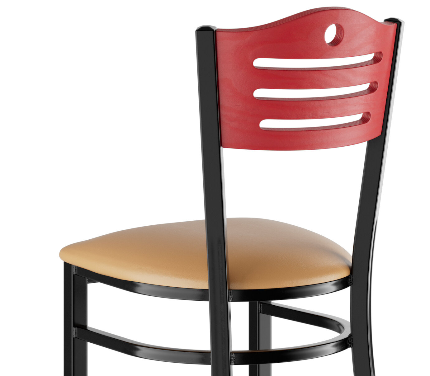 This chair features a style back with attractive slats and a cutout hole, which gives it a unique visual appeal. Plus, the chair's armless design is less restrictive and allows guests to socialize freely.