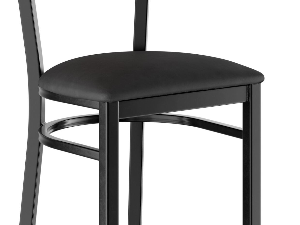 The 2 1/2" thick black vinyl padded seat provides exceptional comfort for your guests, and it's also durable and easy to clean! It is made with fire-retardant foam for added safety.