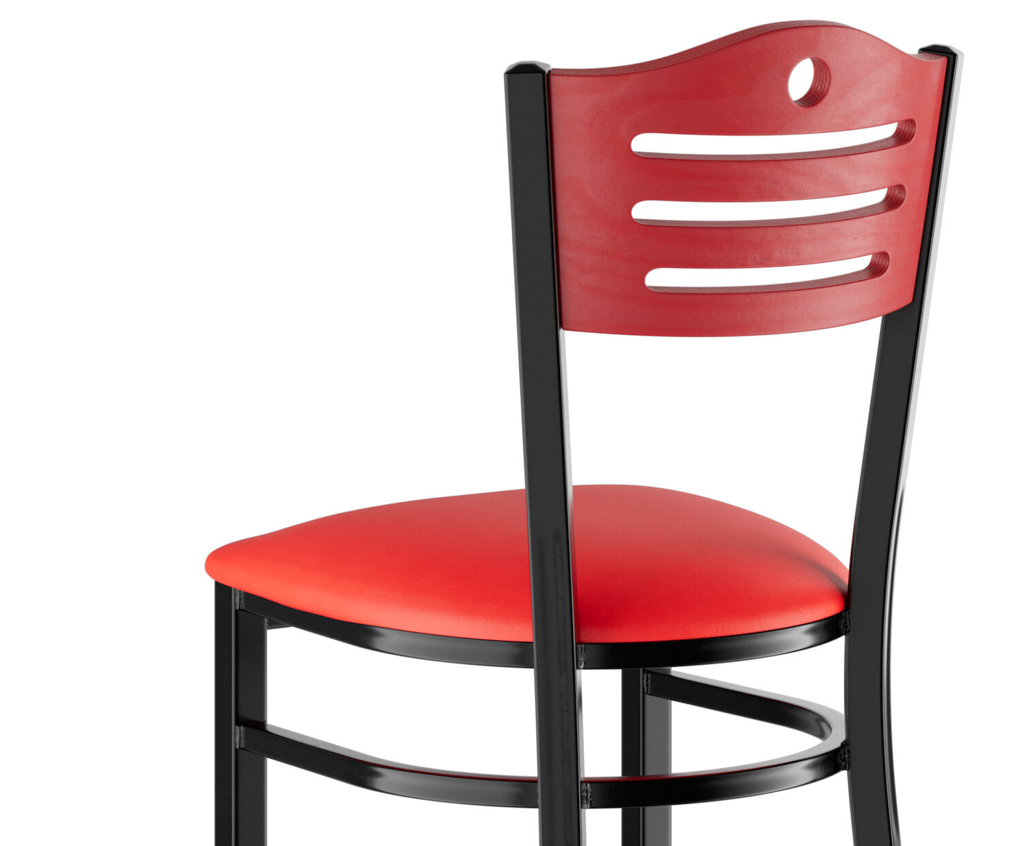 This chair features a style back with attractive slats and a cutout hole, which gives it a unique visual appeal. Plus, the chair's armless design is less restrictive and allows guests to socialize freely.