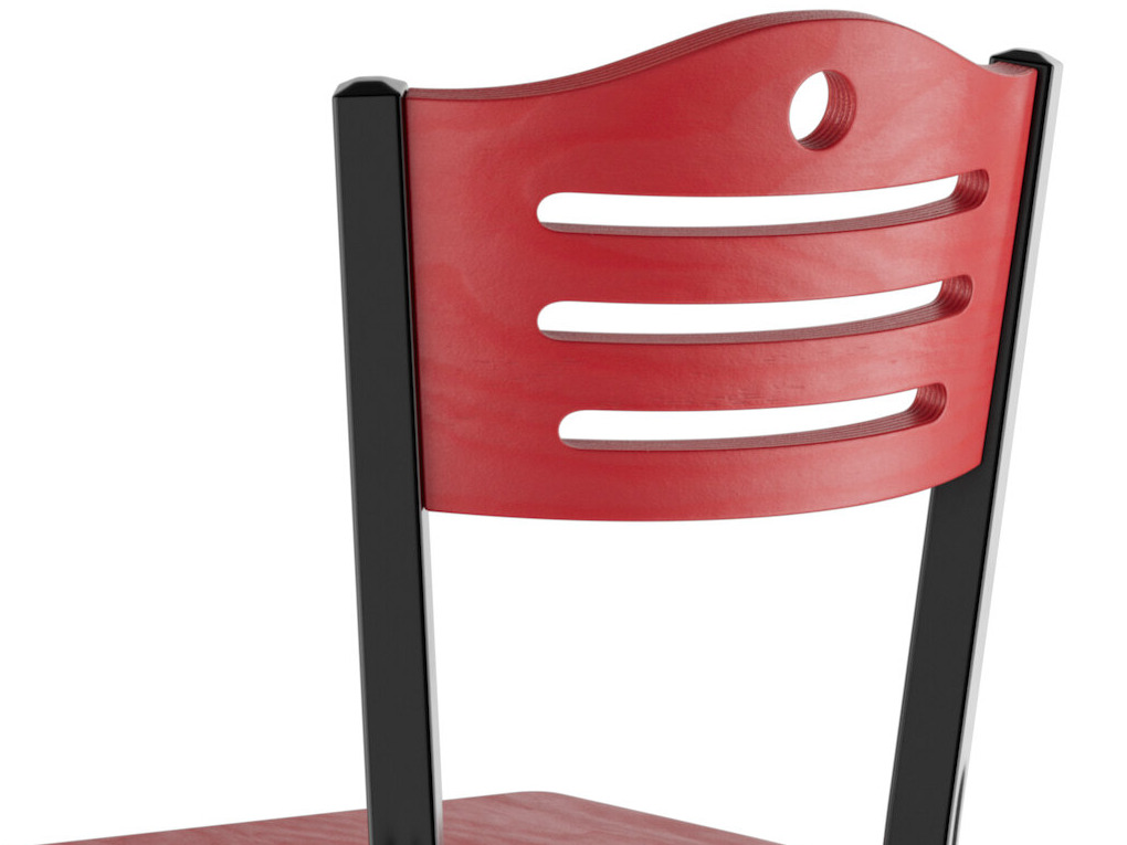 This chair's stylish back and wood seat combine with its modern steel frame to instill a unique look in any location. Plus, since this chair's back is contoured for a customer's back, it will provide comfort while maintaining a distinct appearance.
