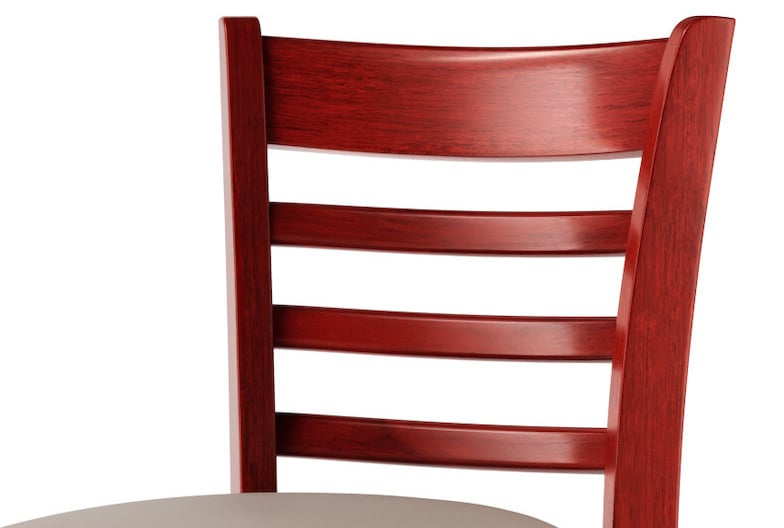 I simply love these Lancaster Table & Seating Mahogany Ladder Back Bar Height Chair with Black Padded Seat . Very well constructed and nice looking too. I love the metal plate on the front of the stool that prevents damage from stepping on it.