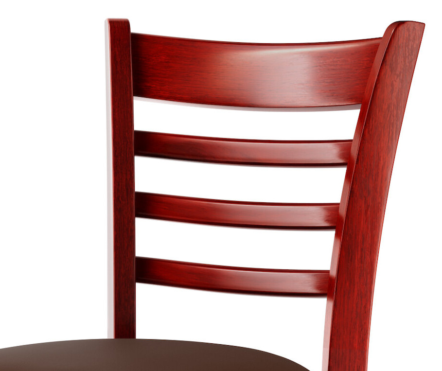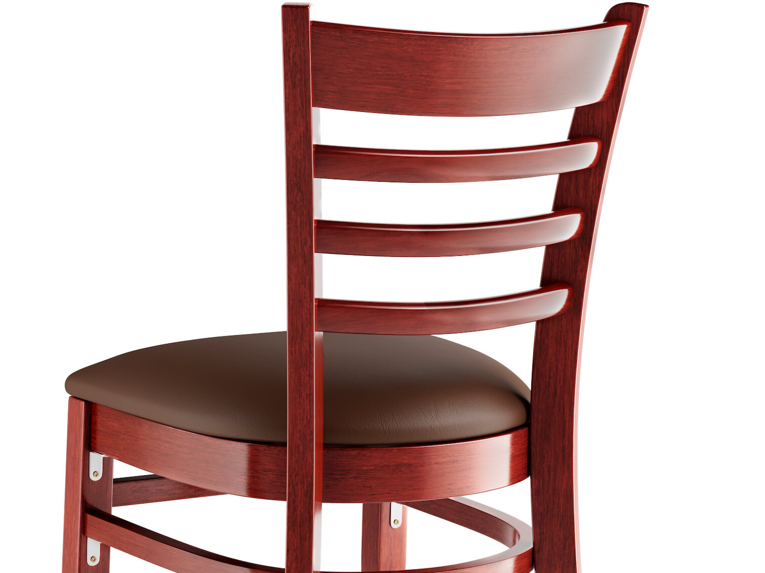 I bought the Lancaster Table & Seating Mahogany Finish Wooden Ladder Back Chair with 2 1/2" Padded Seat & this one (Lancaster Table & Seating Mahogany Finish Wooden Ladder Back Cafe Chair ) to compare the two. This one outshines the other.