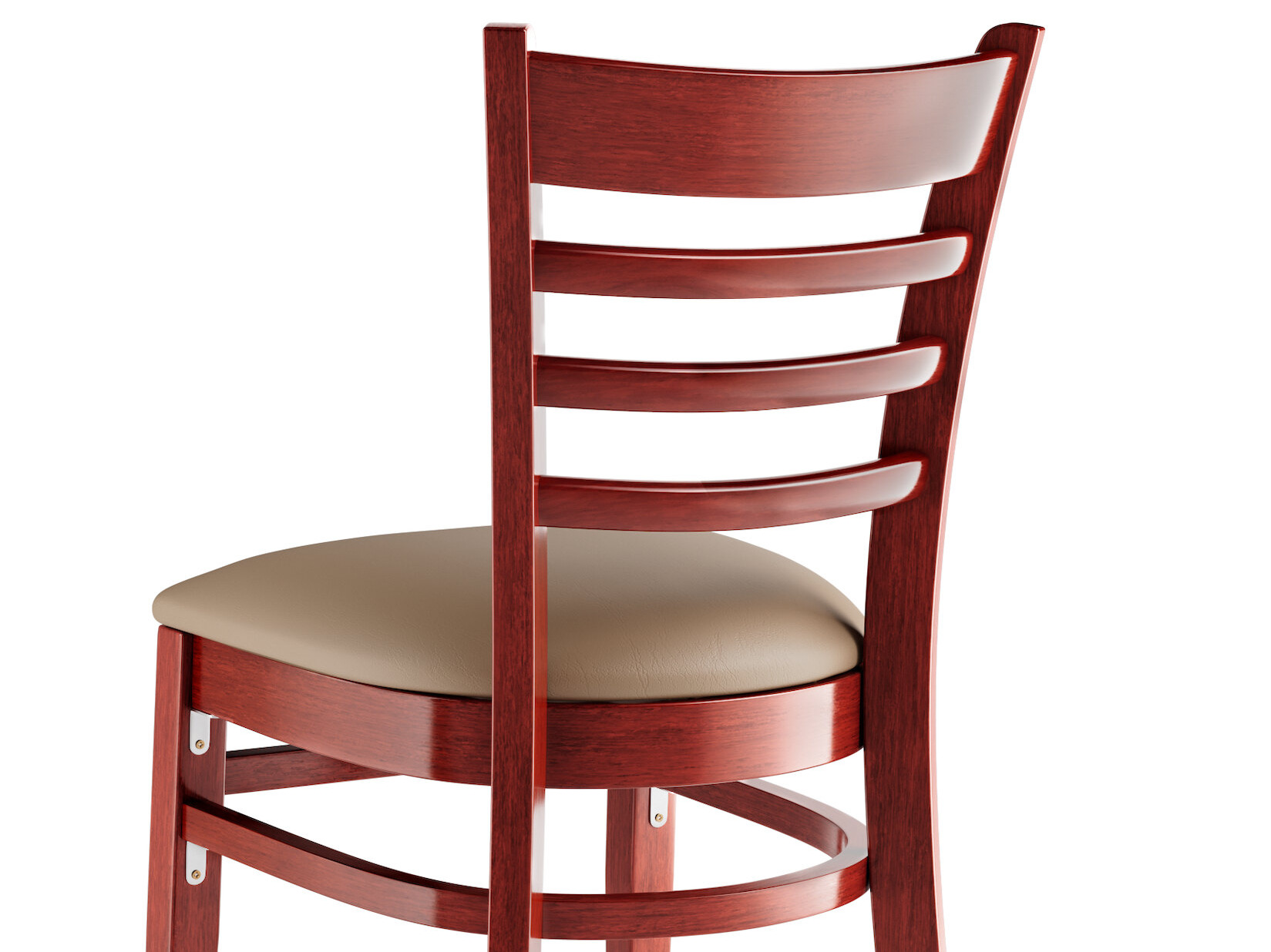 I bought the Lancaster Table & Seating Mahogany Finish Wooden Ladder Back Chair with 2 1/2" Padded Seat & this one (Lancaster Table & Seating Mahogany Finish Wooden Ladder Back Cafe Chair ) to compare the two. This one outshines the other.