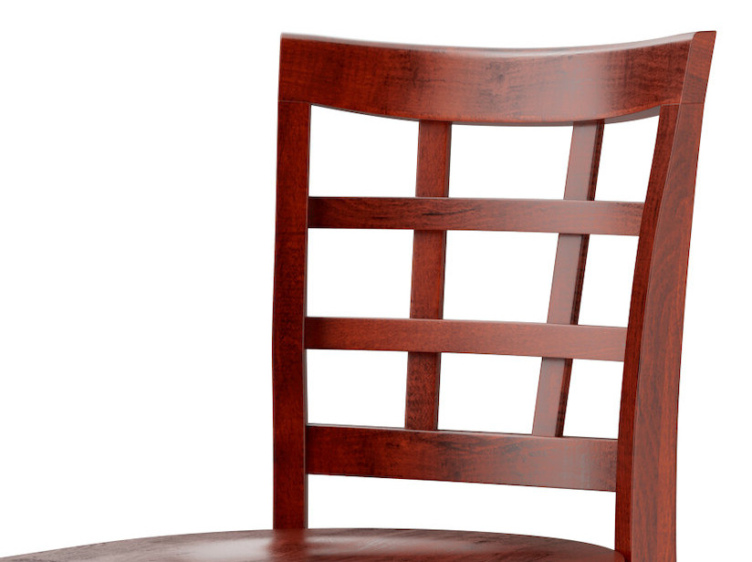 A nice, attractive style bar chair with a great back design. The mahogany finish is lovely and pairs nicely with our tables. The chairs are a great price and easy to keep clean.