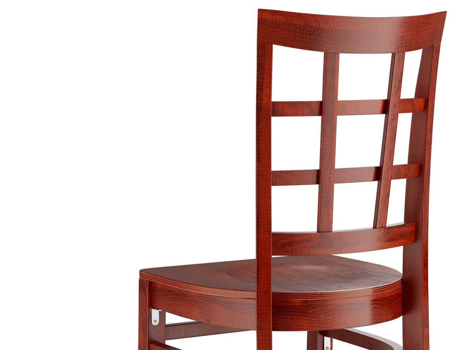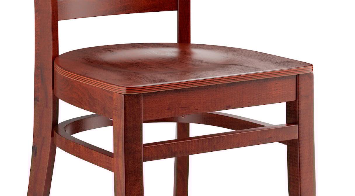 This chair's sleek mahogany seat and stylish mahogany finish combine with its attractive wooden frame to instill a unique look in any location. Plus, since this chair's back is contoured for a customer's back, it will provide comfort while maintaining a distinct appearance.