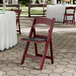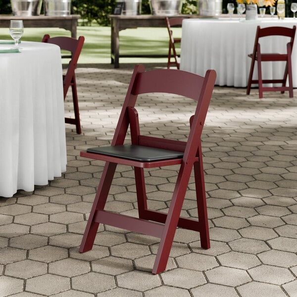 This model's mahogany resin finish adds style and class to any backyard barbeque, formal banquet, or wedding. Guests will feel comfortable for hours, thanks to the chair's vinyl padded seat. Plus, its durable polypropylene design ensures it can stand up to both indoor and outdoor use for added versatility, making it ideal for your business.