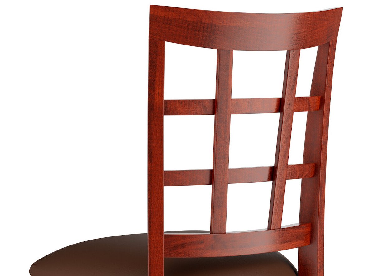 This chair's sleek padded seat and stylish mahogany finish combine with its attractive wooden frame to instill a unique look in any location. Plus, since this chair's back is contoured for a customer's back, it will provide comfort while maintaining a distinct appearance.