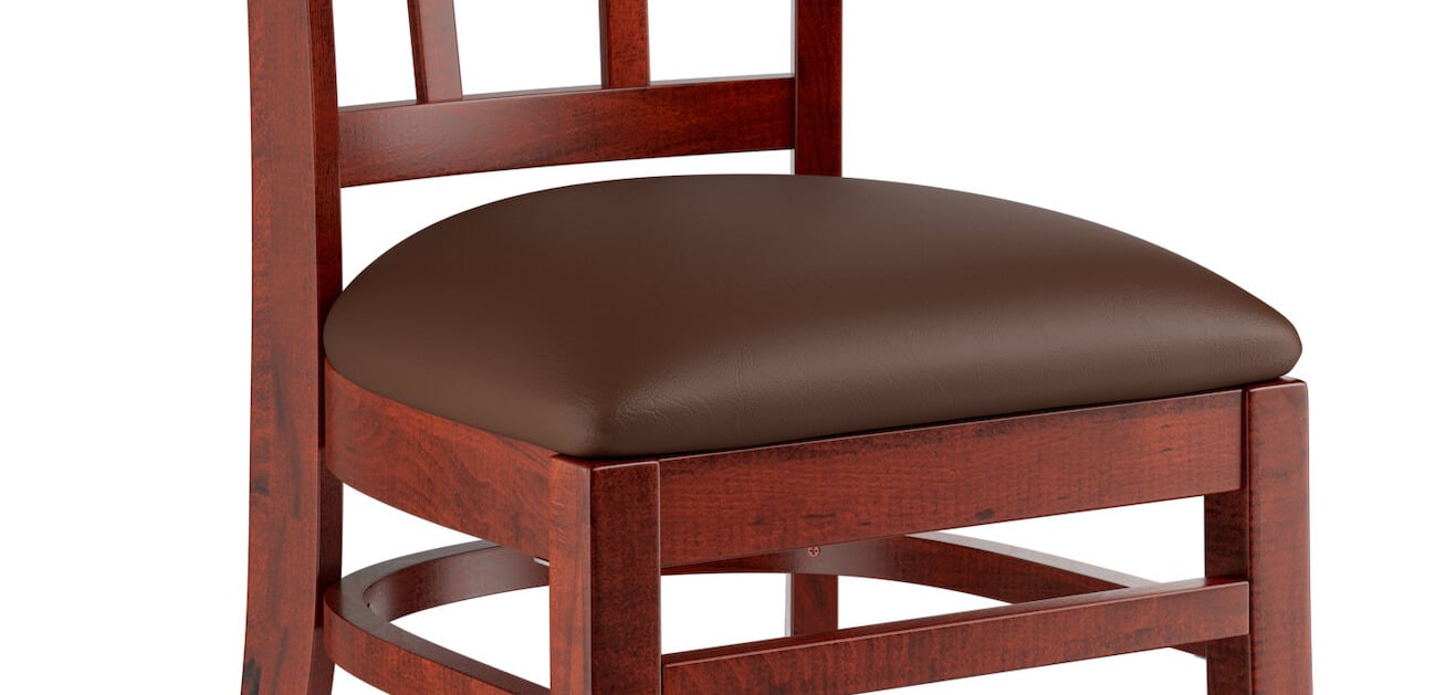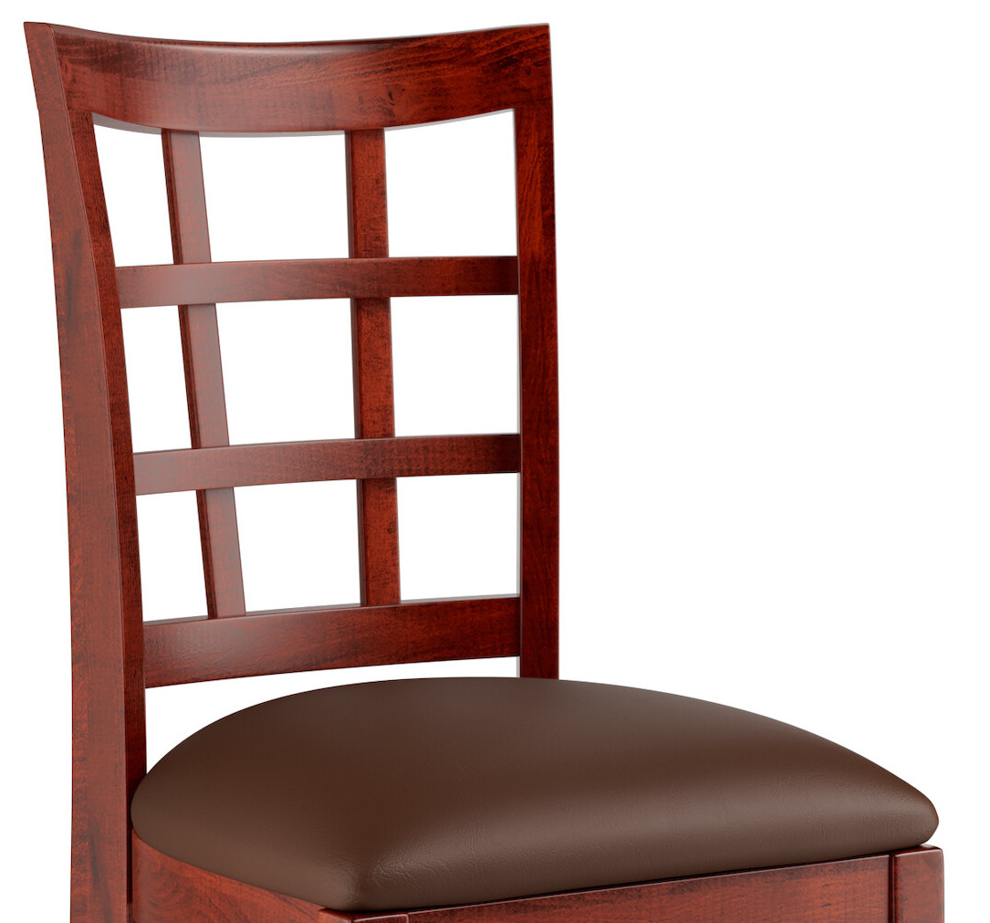 This chair's sleek padded seat and stylish mahogany finish combine with its attractive wooden frame to instill a unique look in any location. Plus, since this chair's back is contoured for a customer's back, it will provide comfort while maintaining a distinct appearance.