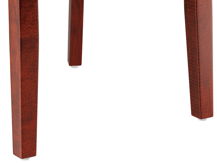 This chair's European beechwood frame provides unmatched durability in your dining room. It can hold up to 350 lb. of weight thanks to the sturdy frame and supports under the seat. Beechwood stands up better to daily use and is able to better resist gouging and chipping compared to other types of wood. Additionally, the smooth surface on this chair provides a natural wood feel, while the elegant mahogany finish offers the ultimate in style.