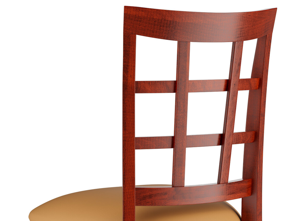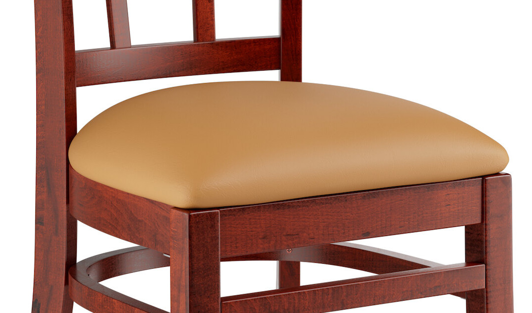This chair's sleek padded seat and stylish mahogany finish combine with its attractive wooden frame to instill a unique look in any location. Plus, since this chair's back is contoured for a customer's back, it will provide comfort while maintaining a distinct appearance.