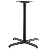 Lancaster Table & Seating Excalibur 33" x 33" Cross Black Outdoor Table Base with 4" Bar Height Column and FLAT Tech Equalizer Table Levelers