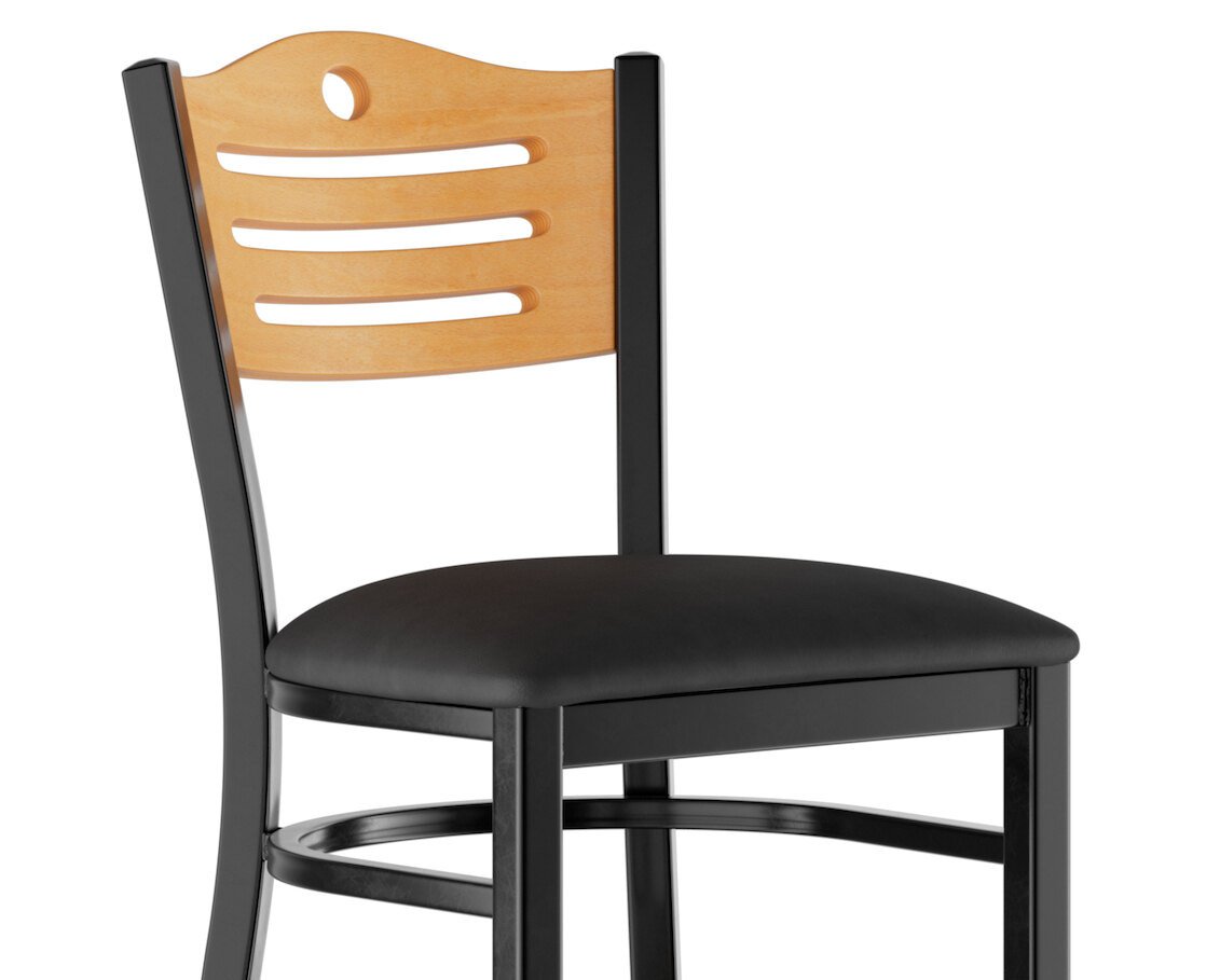 This bar stool features a style back with attractive slats and a cutout hole, which gives it a unique visual appeal. Plus, the bar stool's armless design is less restrictive and allows guests to socialize freely.