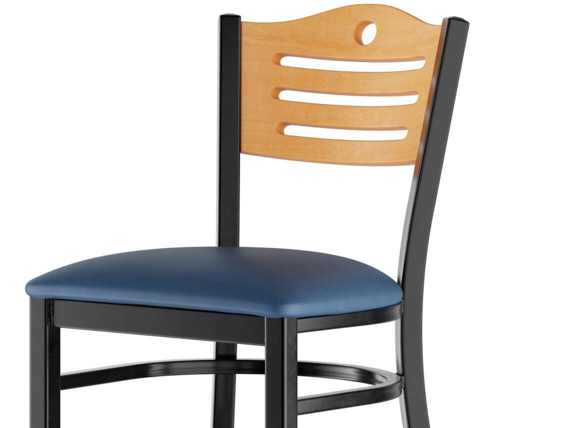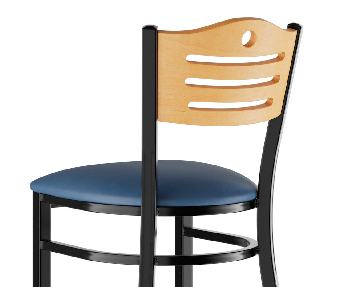 This bar stool features a style back with attractive slats and a cutout hole, which gives it a unique visual appeal. Plus, the bar stool's armless design is less restrictive and allows guests to socialize freely.