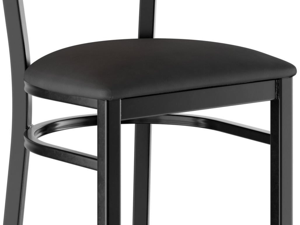 The 2 1/2" thick black vinyl padded seat provides exceptional comfort for your guests, and it's also durable and easy to clean! It is made with fire-retardant foam for added safety.