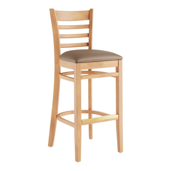 This bar stool's sturdy European beechwood frame provides unmatched durability and an impressive 350 lb. weight capacity. Beechwood stands up better to daily use and is able to better resist gouging and chipping compared to other types of wood. Additionally, the smooth surface on this bar stool provides a natural wood feel, while the elegant natural finish offers the ultimate in style. Its reliable design ensures you'll be using this bar stool in your pub or restaurant for years to come!