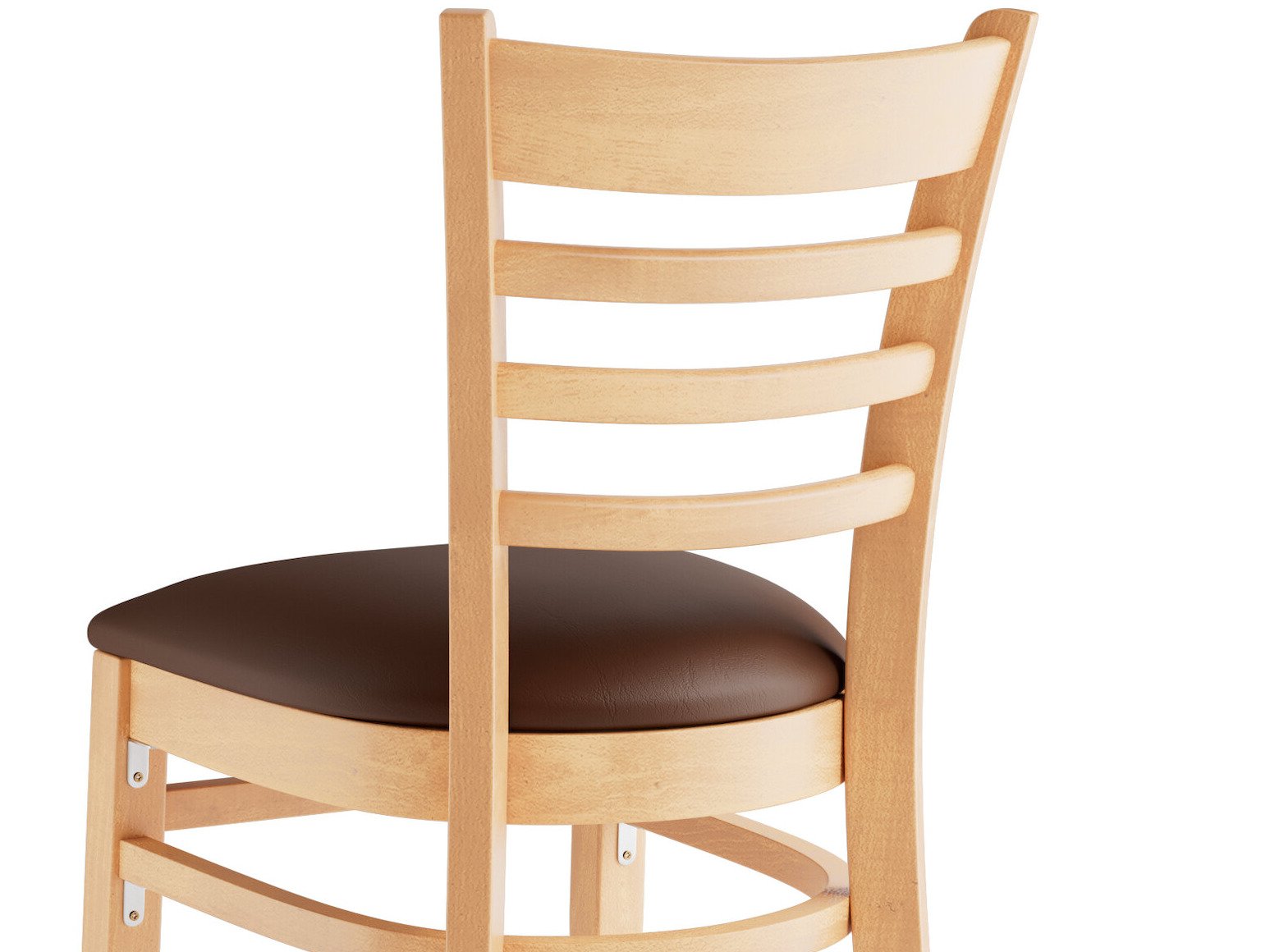 I bought the Lancaster Table & Seating Mahogany Finish Wooden Ladder Back Chair with 2 1/2" Padded Seat & this one (Lancaster Table & Seating Mahogany Finish Wooden Ladder Back Cafe Chair ) to compare the two. This one outshines the other.