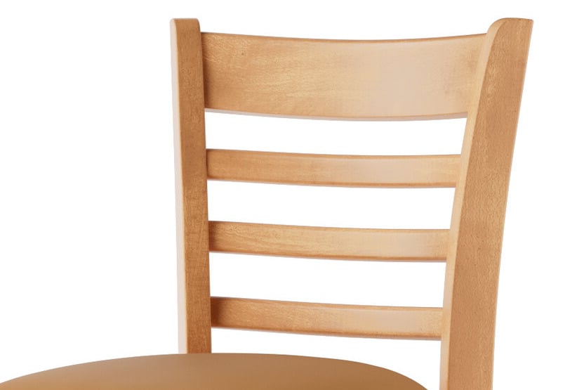 A great natural wood ladder back bar height chair with a stylish black seat. The chairs are well built and designed are great for bar height tables.
