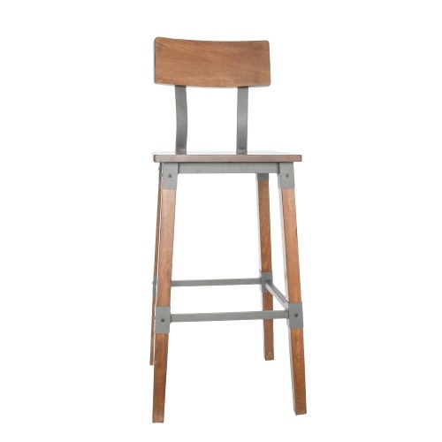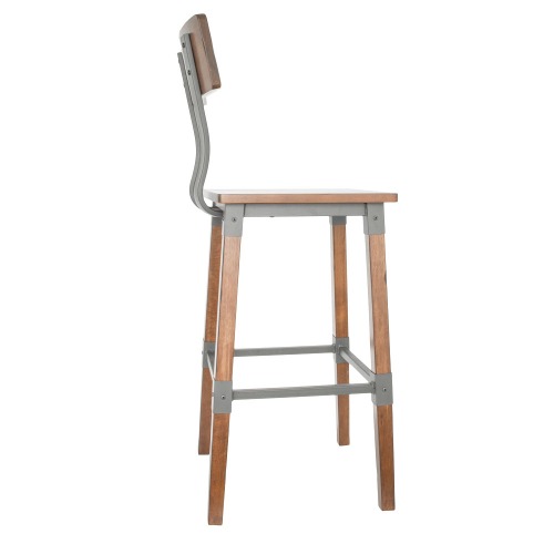 This bar stool's distressed finish and weathered texture combine with its sleek, square seat to add a rustic element with contemporary flair to your establishment. It features the natural look of wood with rugged metal accents for added visual appeal. At an ideal height for both bar and raised table seating, this bar stool is a versatile option for any brewery, winery, or restaurant.