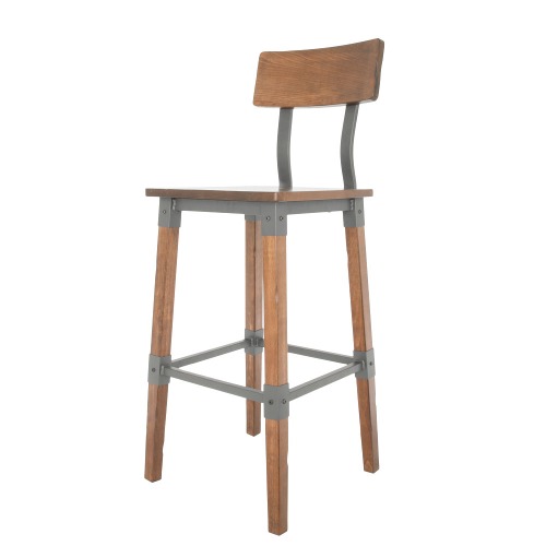 This bar stool features a rectangular back that's contoured to provide extra support to your customers' upper backs. Its rustic walnut finish offers the ultimate in style and is sure to complement the atmosphere of your establishment. Pair this bar stool with other Lancaster Table & Seating industrial chairs, bar stools, or tables (sold separately) to complete your dining space!