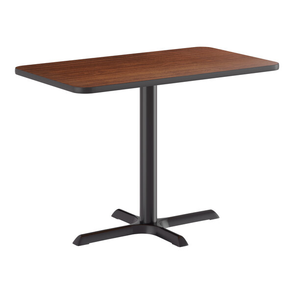 Take the guess-work out of selecting compatible table tops and bases by choosing this Lancaster Table and Seating standard height table with 24" x 42" reversible walnut / oak table top and cross base plate!