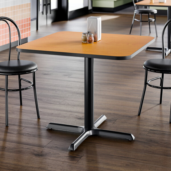 This standard height table comes complete with everything you need to quickly and easily assemble a classic 2- to 4-top table. From the strong, sturdy cast iron base plate and spider, to the sleek black column and durable laminated table top, this table is an all-in-one addition to any establishment. The versatile 36" x 36" design comfortably seats 2-4 guests without taking up too much room, making it the perfect choice for any restaurant, pizza shop, or cafeteria! This table comes unassembled to save you on shipping costs.