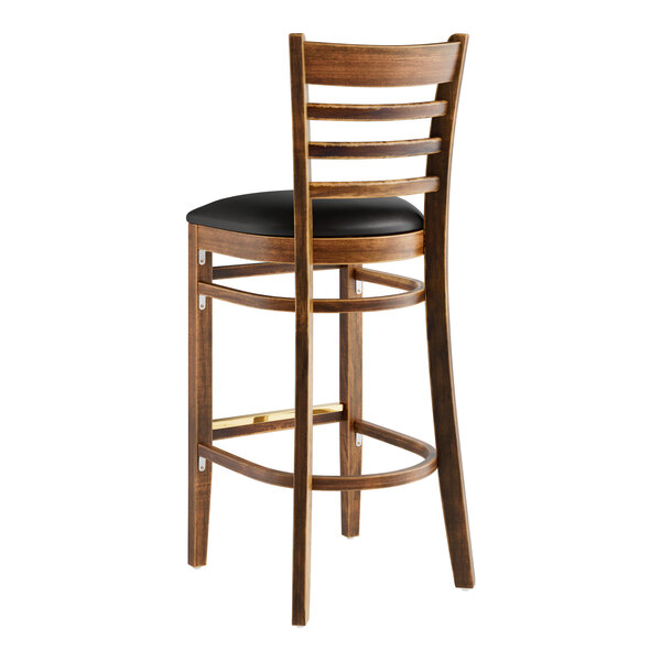 This bar stool also features a ladder back design that's contoured to provide extra support to your customers' upper backs. The 2 1/2" thick black vinyl padded seat provides exceptional comfort for your guests, and it's also durable and easy to clean!