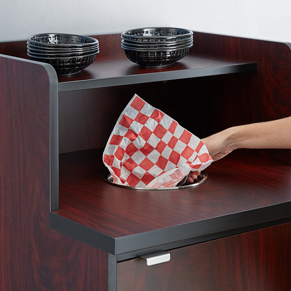 Conceal trash and keep your restaurant looking neat with this Lancaster Table & Seating 32 gallon mahogany receptacle enclosure.