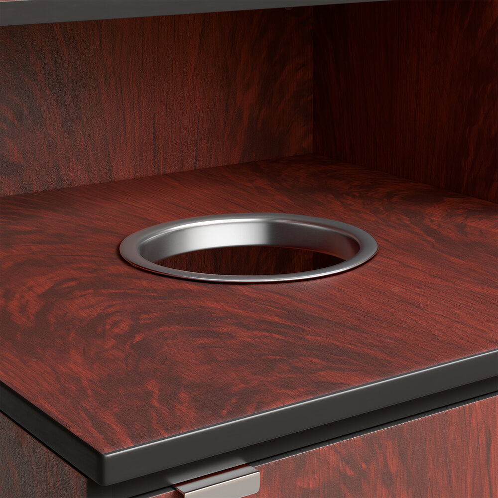 Lancaster Table & Seating Waste 32 Gallon Mahogany Waste Receptacle Enclosure with Drop Hole and Tray Shelf