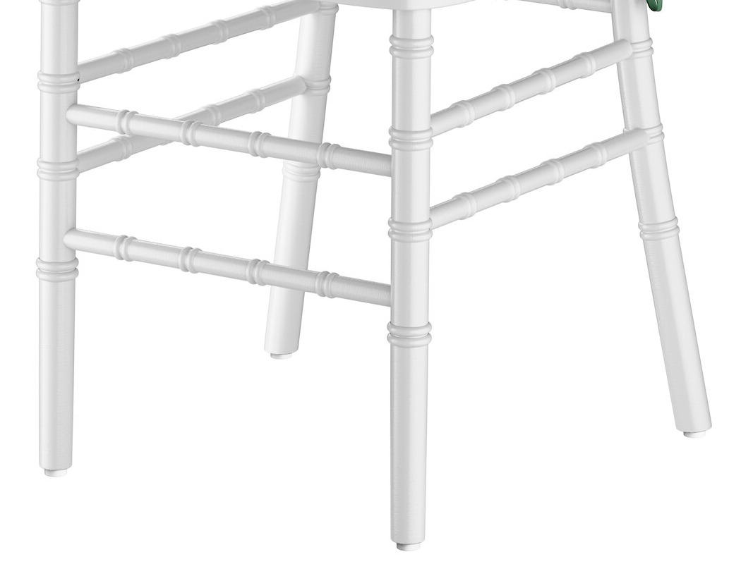 This chair features a true Italian Chiavari design that brings a sense of elegance to any wedding or milestone celebration. Its beautiful white finish also complements any casual or upscale decor.