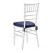 Add elegance to your event with this Lancaster Table & Seating white Chiavari chair with navy blue cushion!